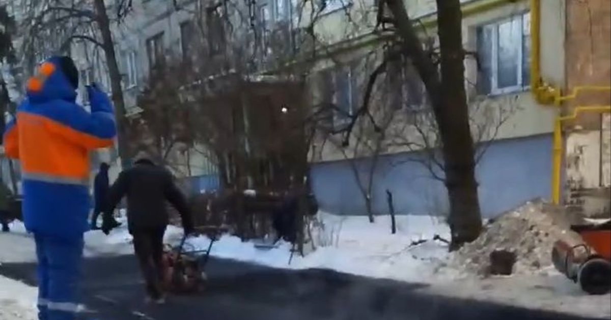 Киянин сварить комунальників, які укладають асфальт: "Люди реально ох#євші. Просто тупо кладуть на сніг, бл#дь". ВIДЕО
