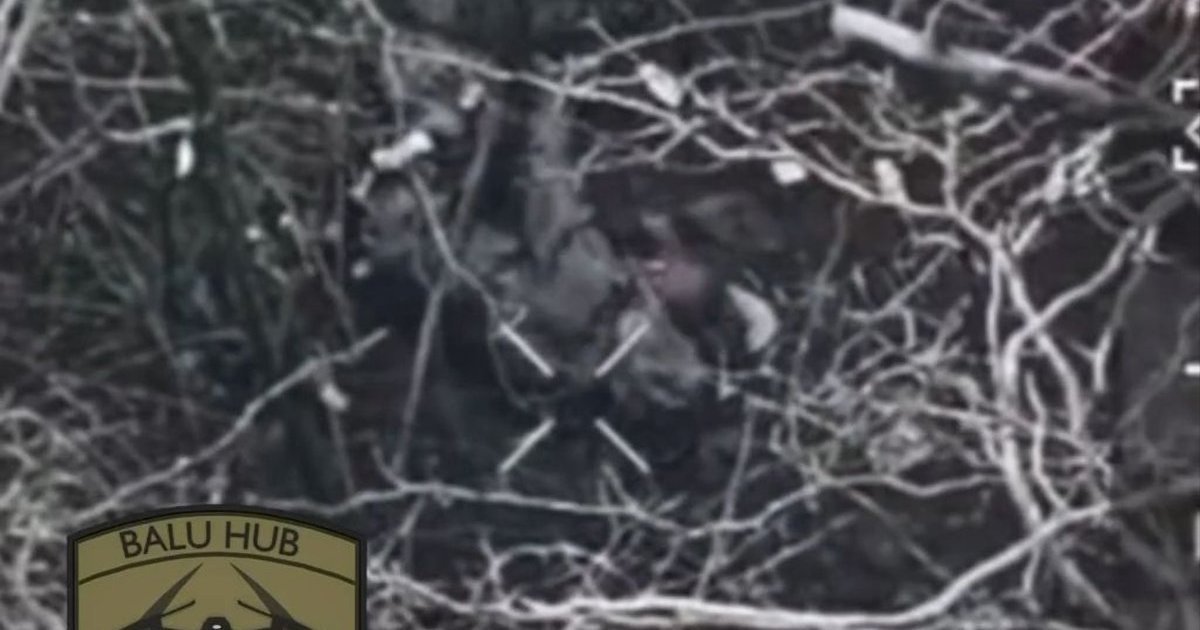 У мережі опублікували кадри, на яких серед кущів лежить рашист із відірваними ногами внаслідок влучання скиду.