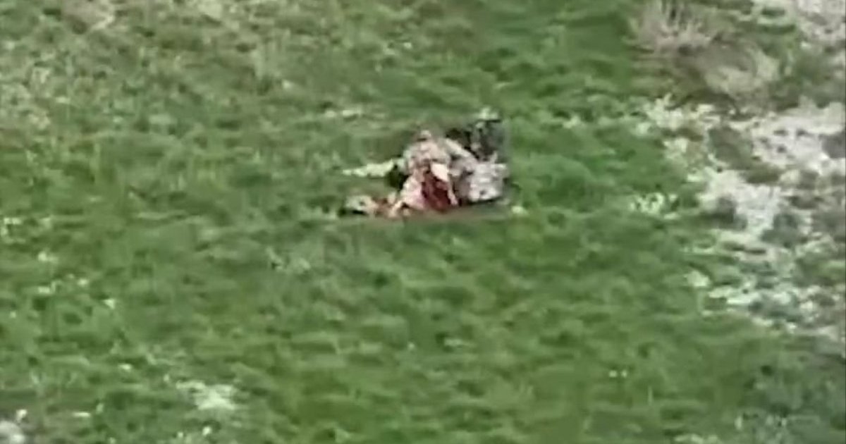 Як повідомляє Цензор.НЕТ, на оприлюднених кадрах рашист, лежачи на землі, намагається збити український БпЛА зі стрілецької зброї, проте марно.
