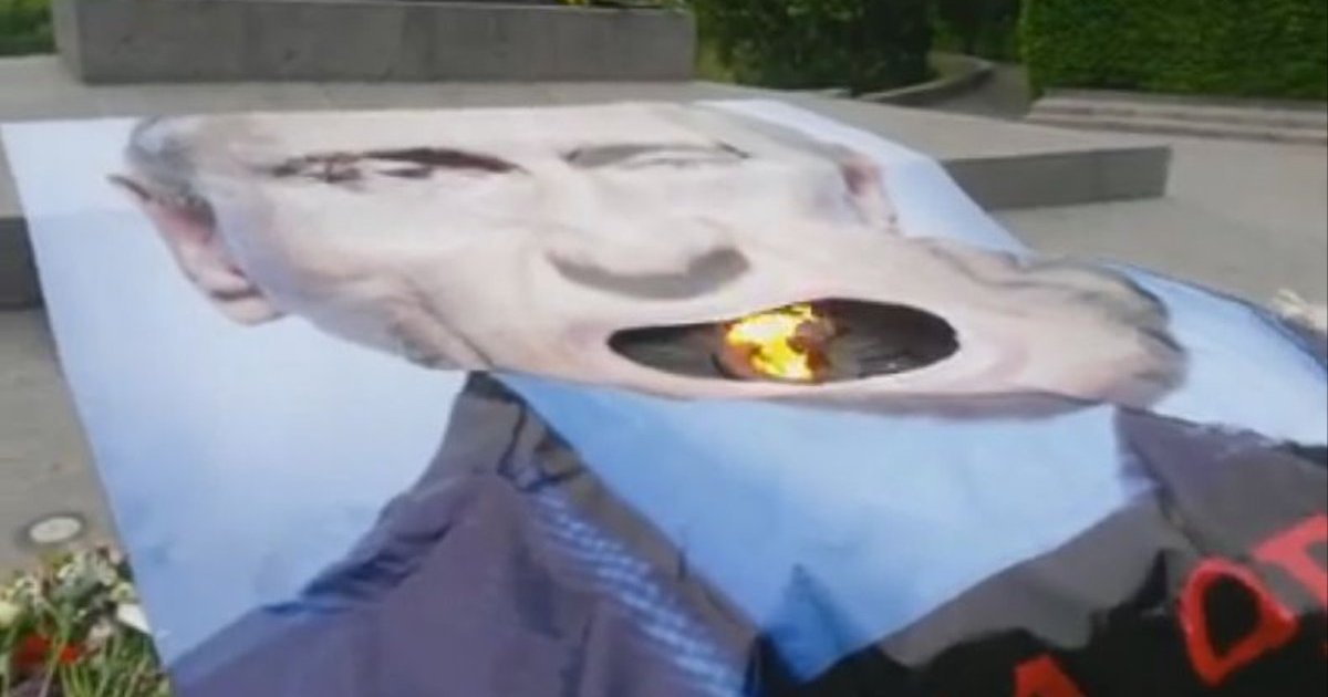 Вічний вогонь у Києві накрили плакатом із зображенням Путіна. ВІДЕО