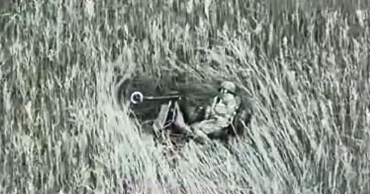 Рашист під час втечі на мотоциклі від дронів 31-ї ОМБр заплутався в оптоволокні серед поля. ВIДЕО