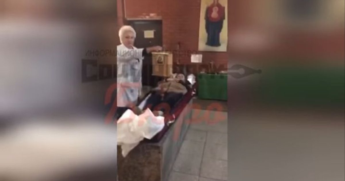Як повідомляє Цензор.НЕТ із посиланням на "СоцИнформБюро", імовірно, співробітники державної бюджетної установи "Ритуал" влаштували веселощі на честь перемоги над конкурентами. Швидше за все, вечірка пройшла в перший день, коли співробітники "Ритуалу" в'їхали в приміщення.Компанія напідпитку влаштувала гуляння в залі прощання. На опублікованому в Інтернеті відео видно, як одна з жінок із сигаретою лягає в труну. Жінка в білому халаті - імовірно, співробітниця лікарні - ставить у неї в ногах ящик для збору пожертв. Поруч стоїть ще одна людина в білому халаті.