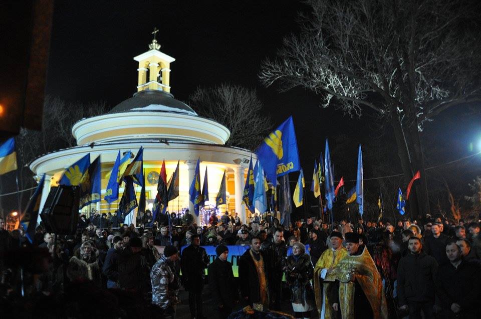 Учасники смолоскипної ходи пройшли від Арсенальної площі до Аскольдової могили, де відбувся мітинг та поминальний молебень.