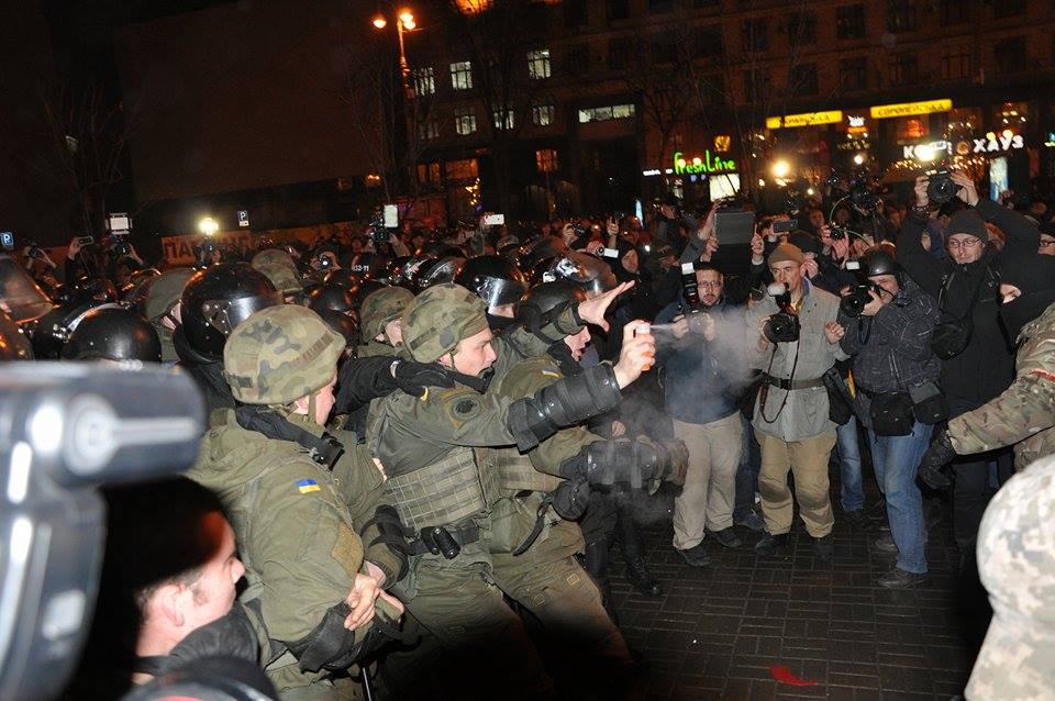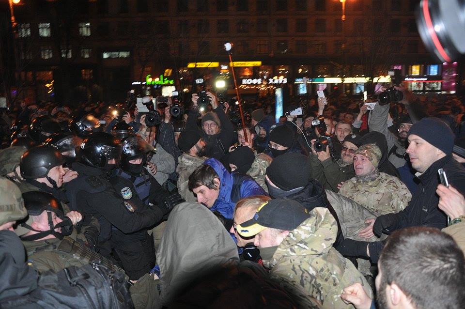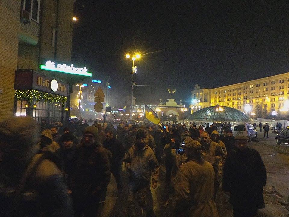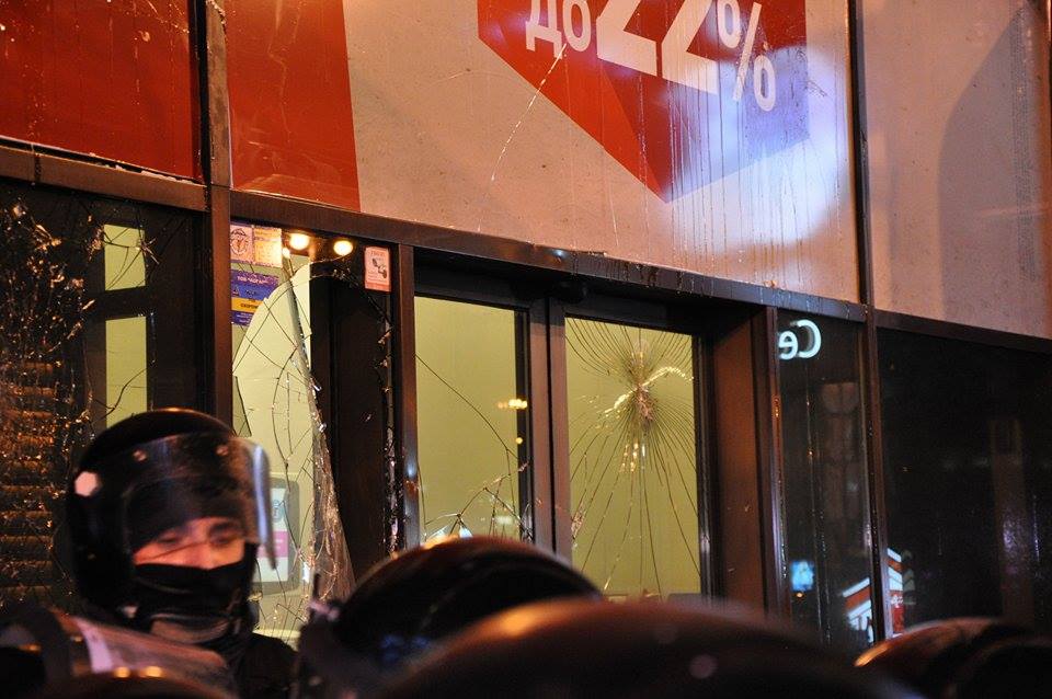 Повернувшись на майдан Незалежності, мітингувальники намагалися розгромити відділення "Альфа-банку", розташоване неподалік. У підсумку в банку розбито вікна та вивіску, поліція змушена була застосувати газ, щоб заспокоїти присутніх.