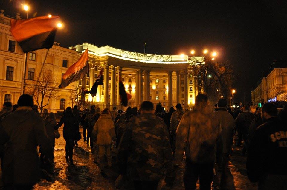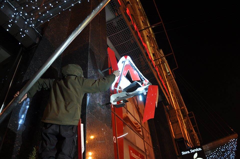 "Добровольчий Рух ОУН" на честь Дня українського добровольця закидав офіс компанії Ахметова і відділення "Альфа-банку" камінням (оновлено). ВІДЕО+ФОТОрепортаж