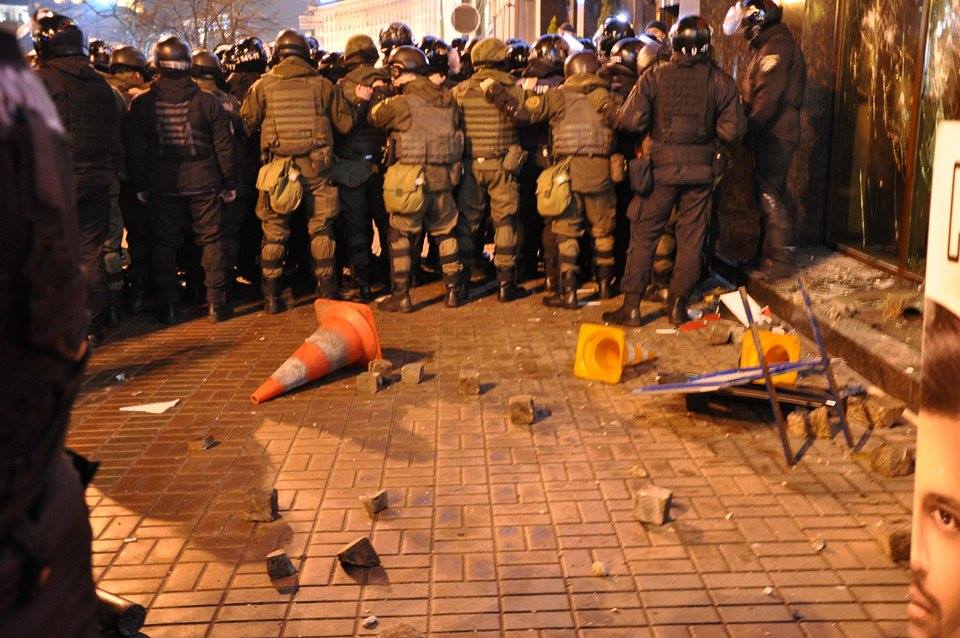 Закидавши офіс на Михайлівській камінням, вибуховими пакетами і димовими шашками, учасники акції повернулися на Майдан.